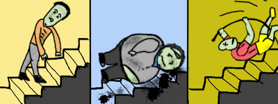 Both stairs and steep slopes are navigable by the undead. For your protection, the RMA recommends at least a 10 foot-high vertical barrier with removable access (pull up the ladder dumb-ass). These precautions are not sufficient if you are pursued by dead climbers or Czechoslovakian pole-vaulters.